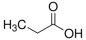 Axit propionic là hợp chất hữu cơ, có nguồn gốc tự nhiên được ứng dụng trong ngành công nghiệp và hóa học. Đây chính là một axit cacboxylic có công thức cấu tạo là CH3-CH2-COOH. Trong đó, nguyên tử cacbon nằm chính giữa liên kết với 1 nguyên tử oxi và 3 nguyên tử Hydro. Mặt khác, nguyên tử O lại liên kết với cacbon qua liên kết đơn.