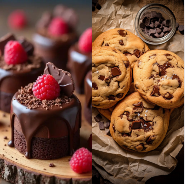 Bột Cacao là nguyên liệu không thể bỏ qua trong lĩnh vực sản xuất bánh ngọt và bánh quy. Đây là một nguyên liệu then chốt để kiến tạo nên những hương vị và màu sắc nguyên bản. Ứng dụng phổ biến nhất của bột Cacao chính là các dòng bánh chocolate đa dạng, từ những chiếc bánh gato trang trọng, bánh brownies ẩm mịn đặc trưng, đến bánh muffin và bánh quy chocolate hấp dẫn. Nguyên liệu này không chỉ được trộn trực tiếp vào hỗn hợp bột để tạo hương vị chính cho bánh mà còn được rắc lên bề mặt như bánh Tiramisu, vừa để trang trí vừa tăng cường hương vị. Thêm vào đó, nó còn xuất hiện trong nhân chocolate của bánh sừng bò, tạo nên lớp phủ glaze cho bánh donut. Cuối cùng, ngoài việc mang lại hương vị và màu sắc hấp dẫn từ màu nâu tự nhiên, bột Cacao còn góp phần cải thiện cấu trúc, giúp một số loại bánh có được độ mềm mịn và bông xốp vượt trội